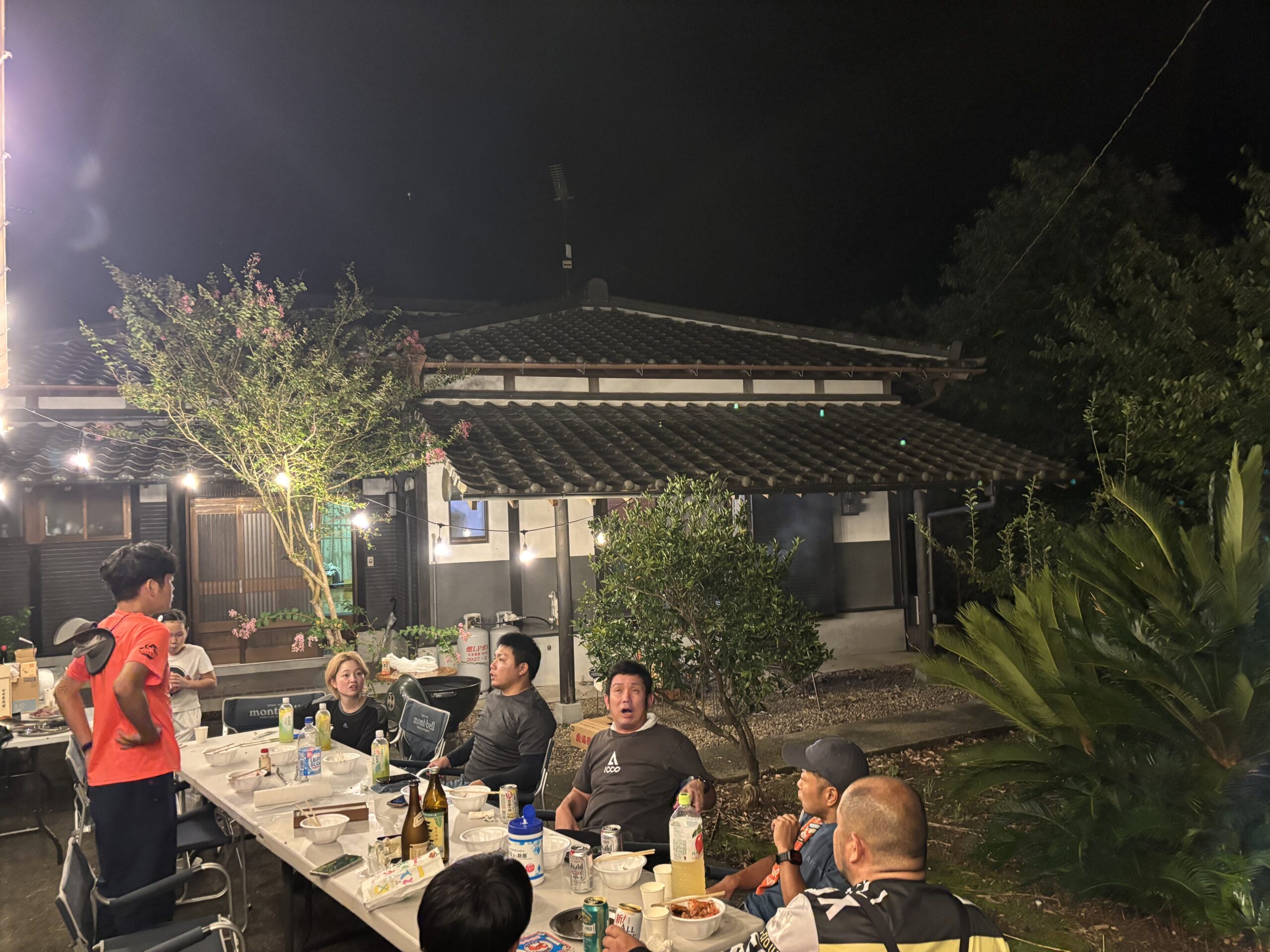 戸馳島の農家の方々など、10人以上が集まってくださり、庭先でのBBQは、まるでアメリカのホームパーティのようでした。美味しい焼酎、絶品の肉、そして何より、皆さんの温かい笑顔。本当に、素敵な時間でした。